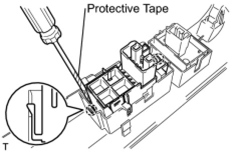 (a) Using a screwdriver with its tip wrapped in protective tape, disengage the 2 claws and remove the power window switch.