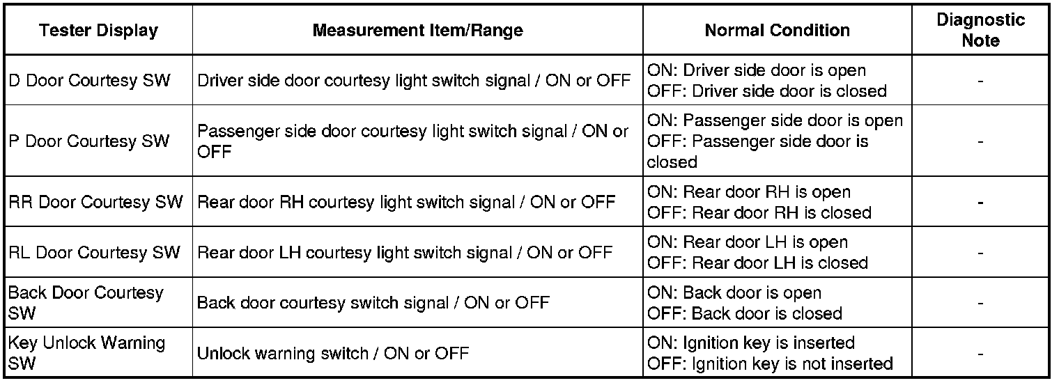 Using a Techstream to read the Data List allows the values or states of switches, sensors, actuators and other items to be read without removing any parts. This non-intrusive inspection can be very useful because intermittent conditions or signals may be discovered before parts or wiring is disturbed. Reading the Data List information early in troubleshooting is one way to save diagnostic time