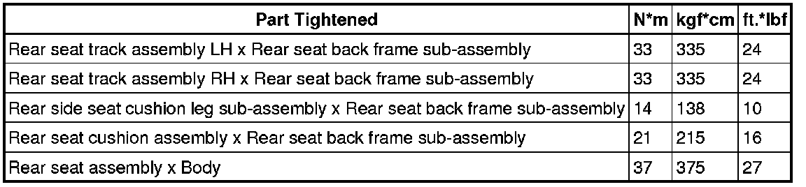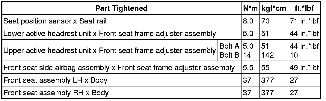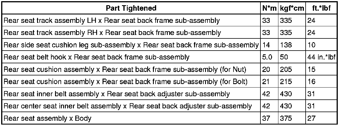 SERVICE SPECIFICATIONS: SEAT: TORQUE SPECIFICATIONS