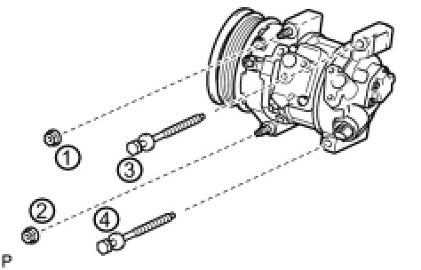 (a) Using a "TORX" socket wrench (E8), install the compressor with the 2 stud bolts.