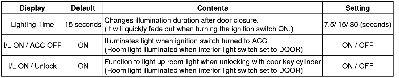 (e) Select the setting by referring to the table below.