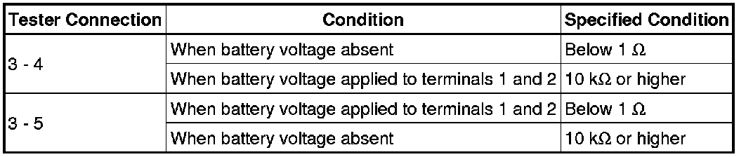 If the result is not as specified, replace the relay.