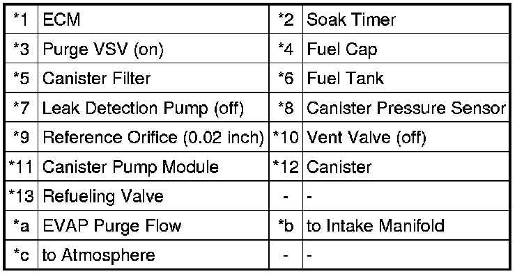 * *2: This result suggests that due to purge line blockage or purge VSV malfunction, the DTC was stored by the purge flow monitor while the engine was running, or that key-off monitor test results were nearly borderline values.