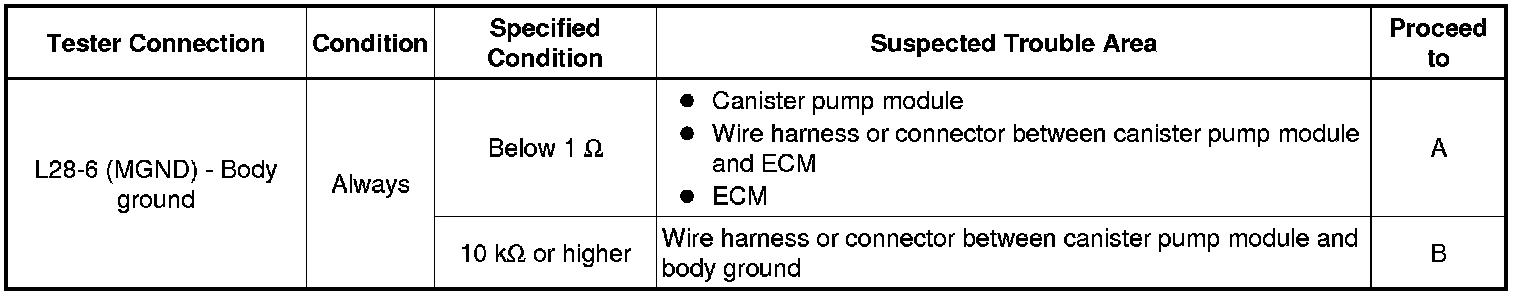 B -- CHECK HARNESS AND CONNECTOR (ECM - CANISTER PUMP MODULE)