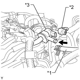 (a) Disconnect the hose (connected to the intake manifold) from the purge VSV.