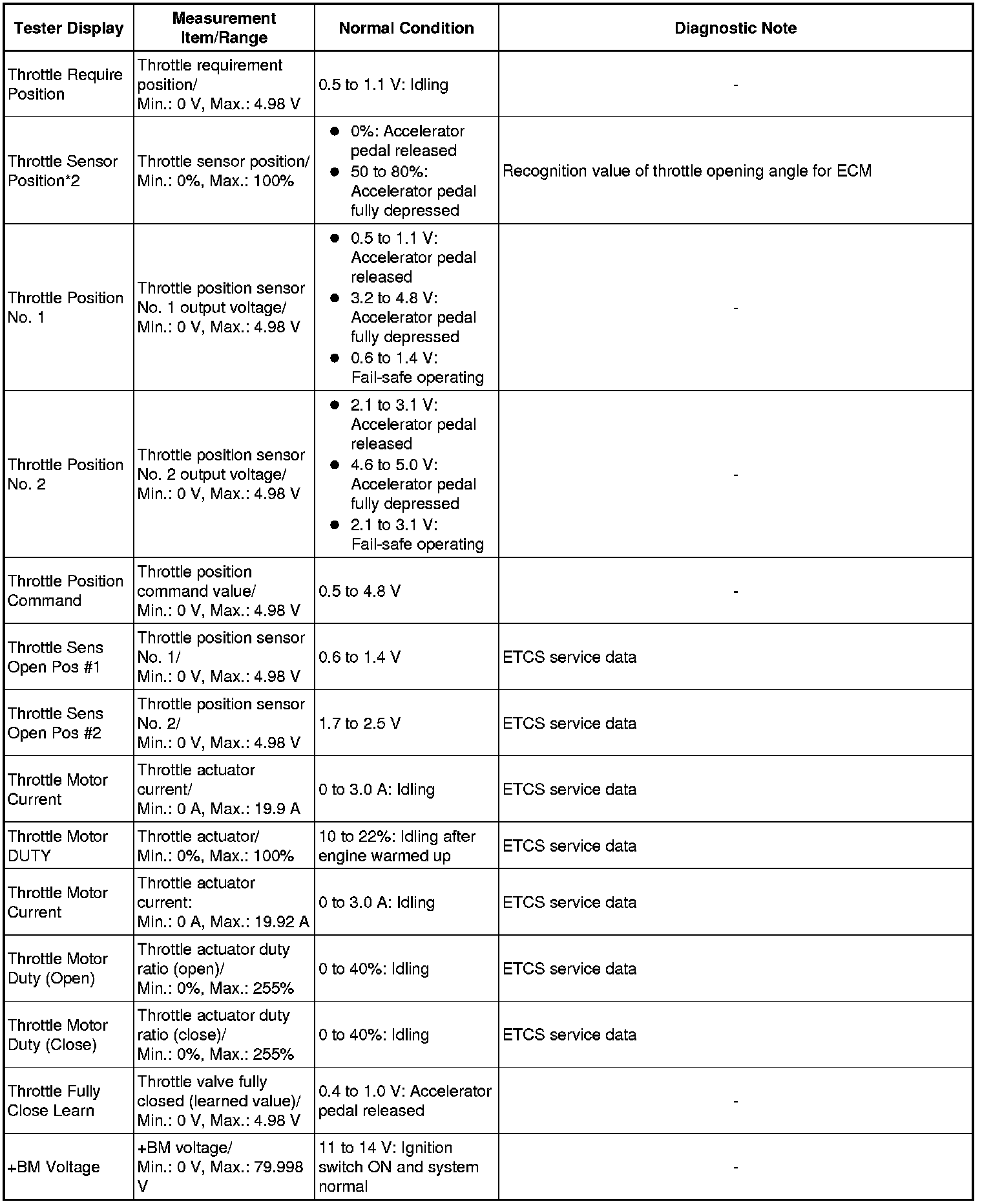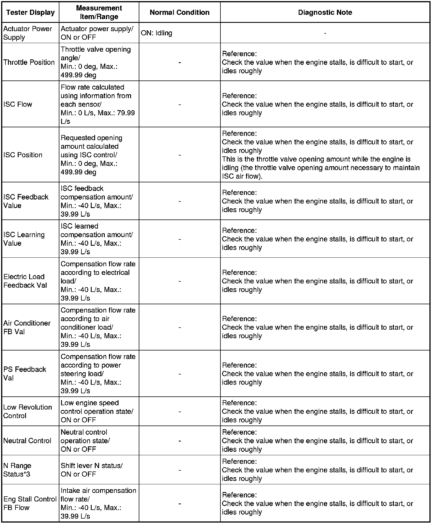 * *2: Excluding throttle valve opening percentage due to Idle Speed Control (ISC).