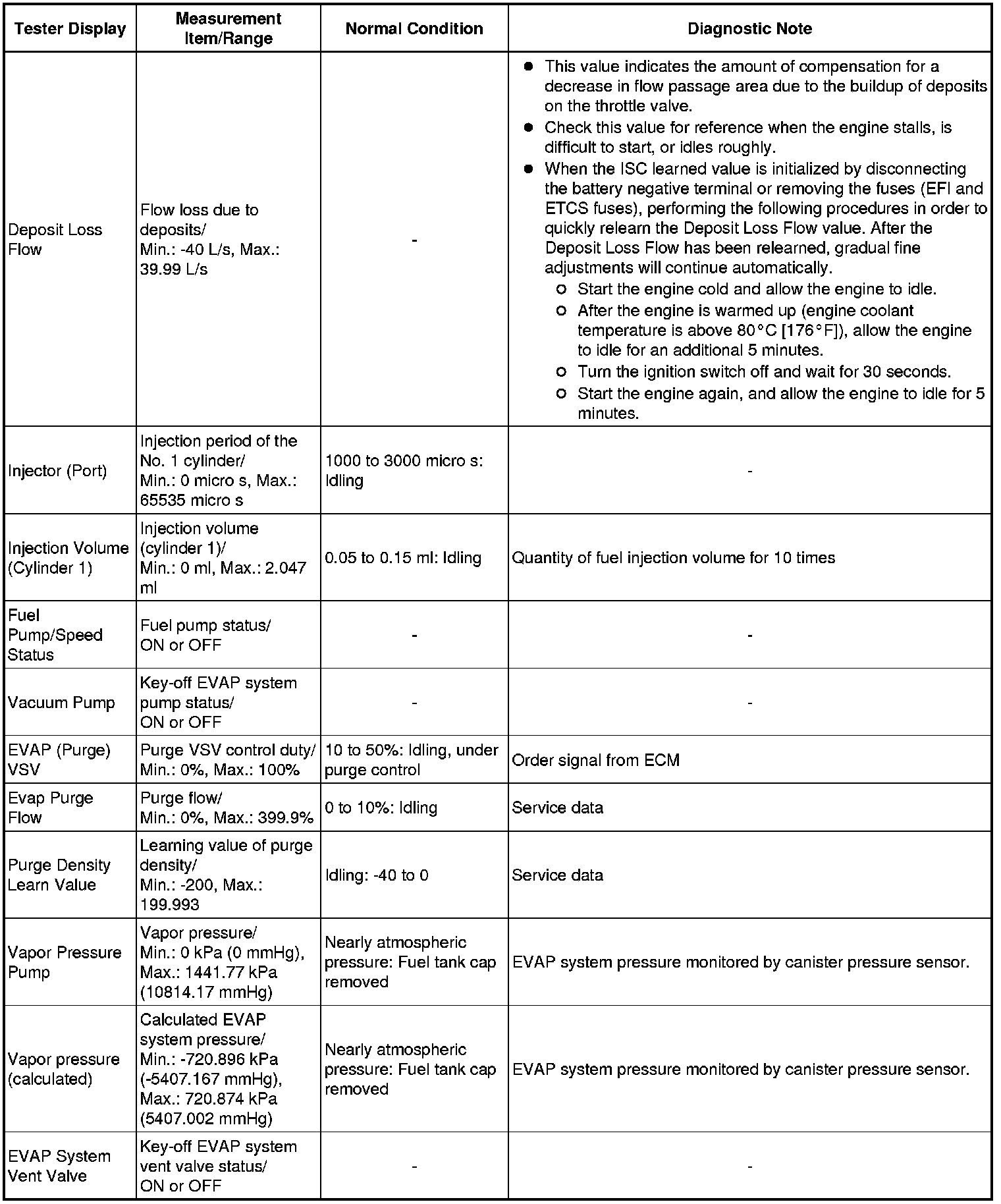 In the table below, the values listed under Normal Condition are reference only. Do not depend solely on these values when determining whether or not a part is faulty.