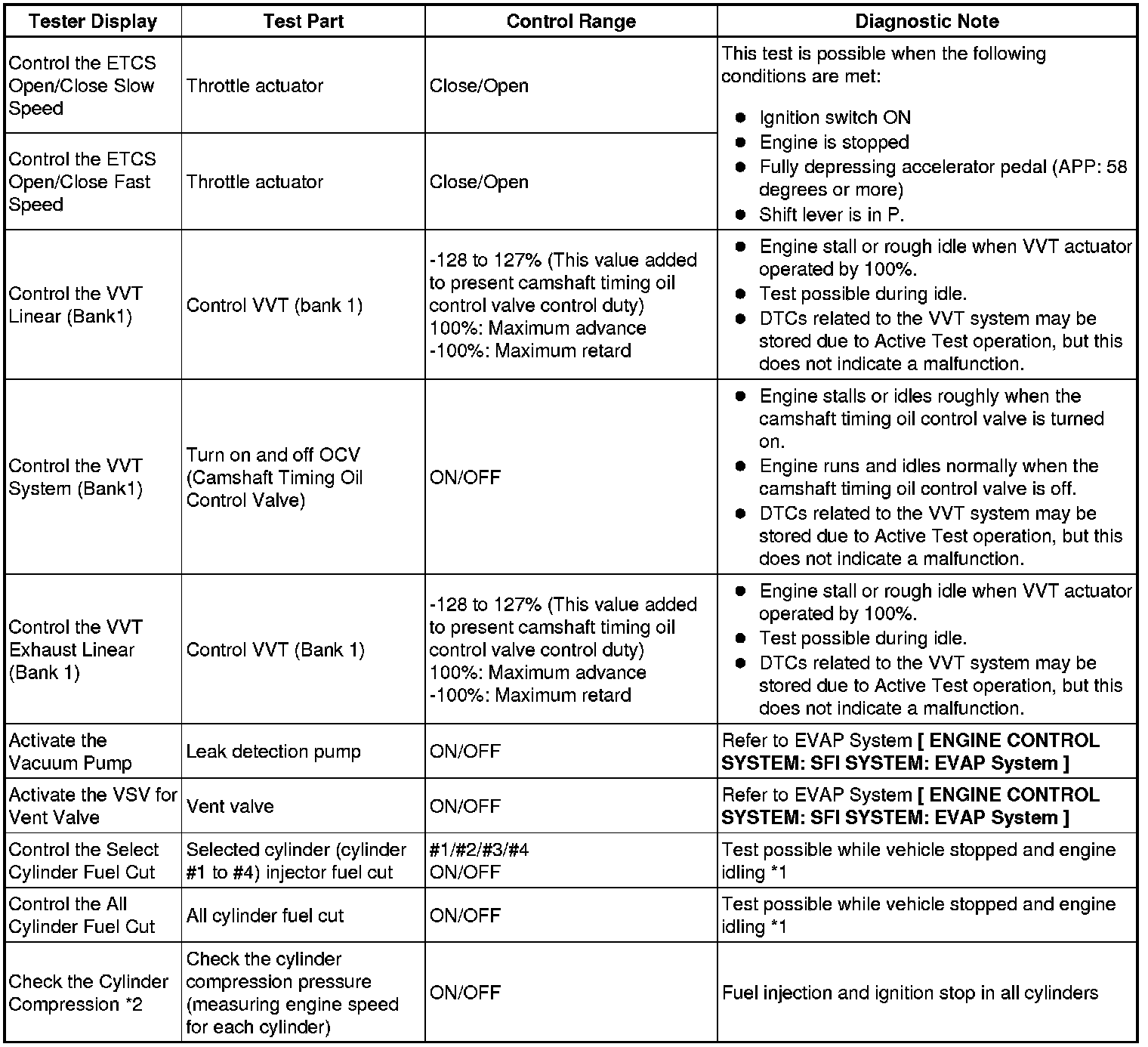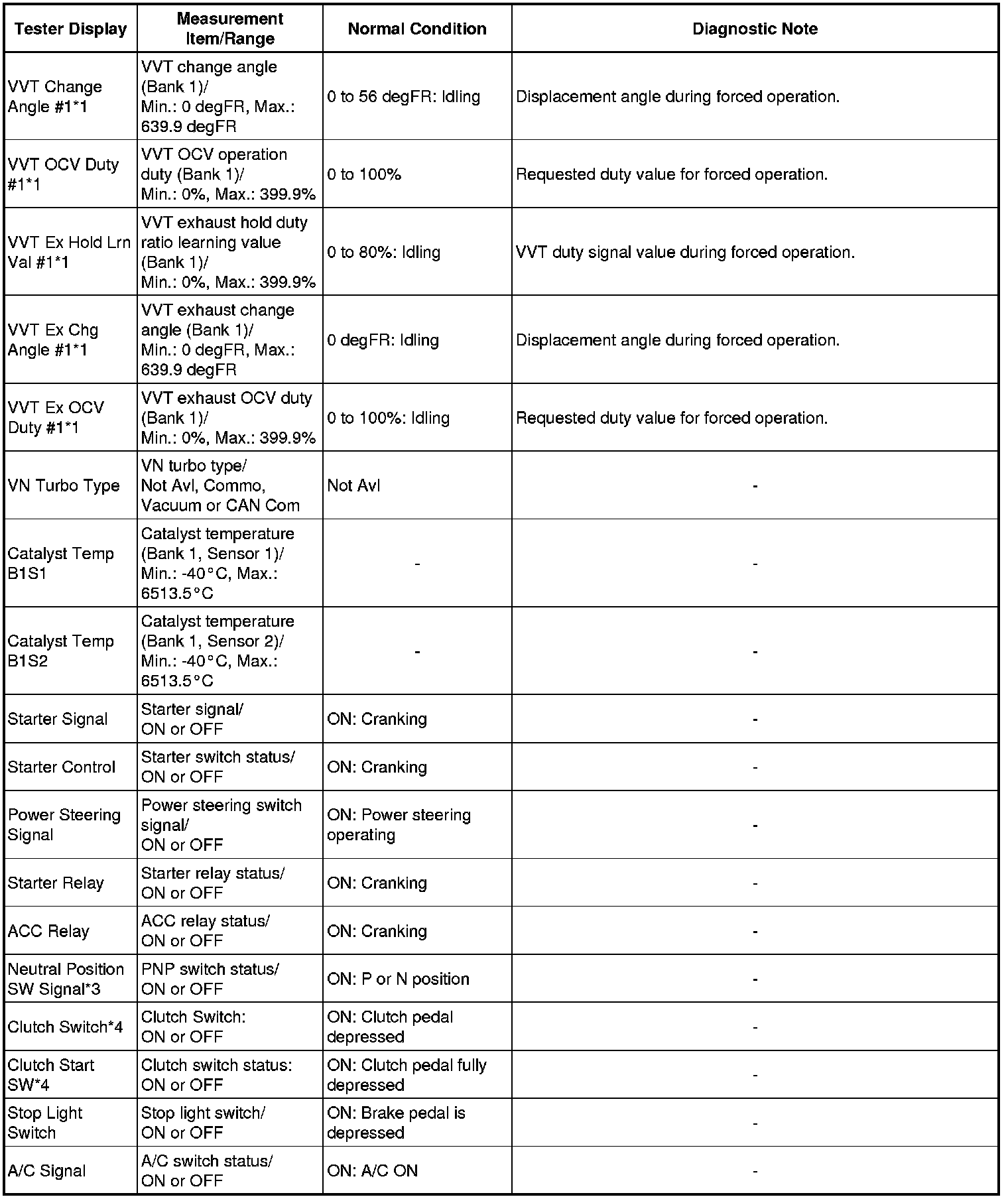 * *1: Values are only displayed when performing the Active Tests: Control the VVT Linear (Bank1). For other Active Tests, the value will be 0.