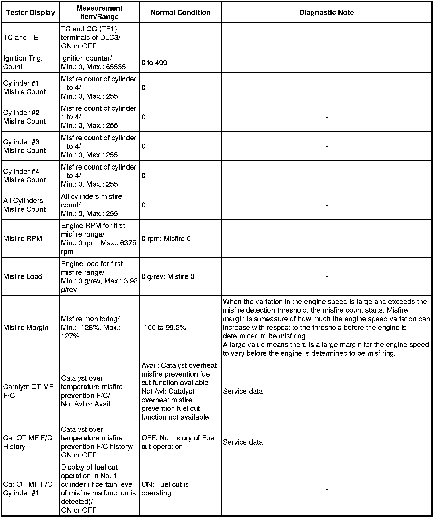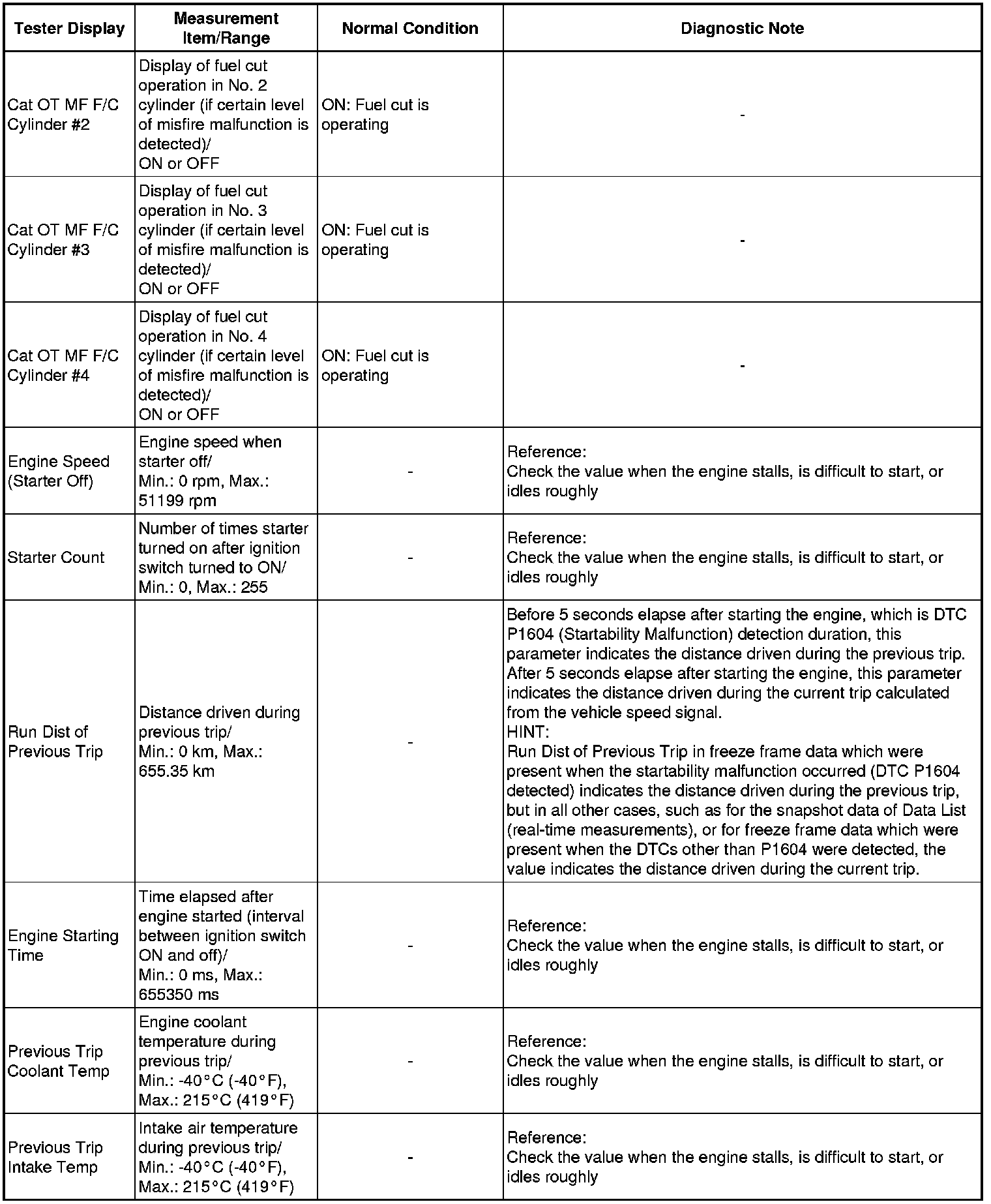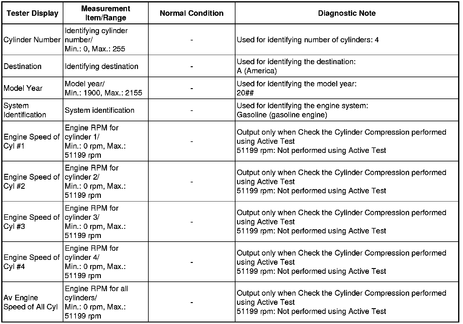 *2: When cranking the engine, each cylinder measures the engine rpm.