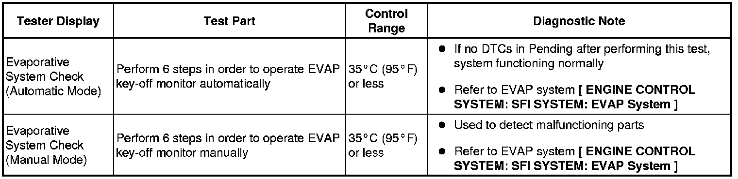 (e) Perform the System Check by referring to the table below.