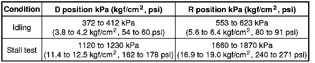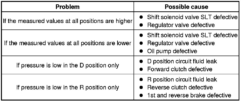 * Perform the test at the normal operating ATF (Automatic Transmission Fluid) temperature: 50 to 80°C (122 to 176°F).