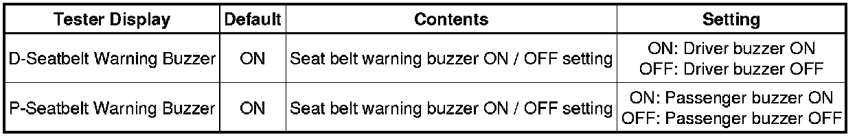 SEAT BELT: SEAT BELT WARNING SYSTEM: CUSTOMIZE PARAMETERS