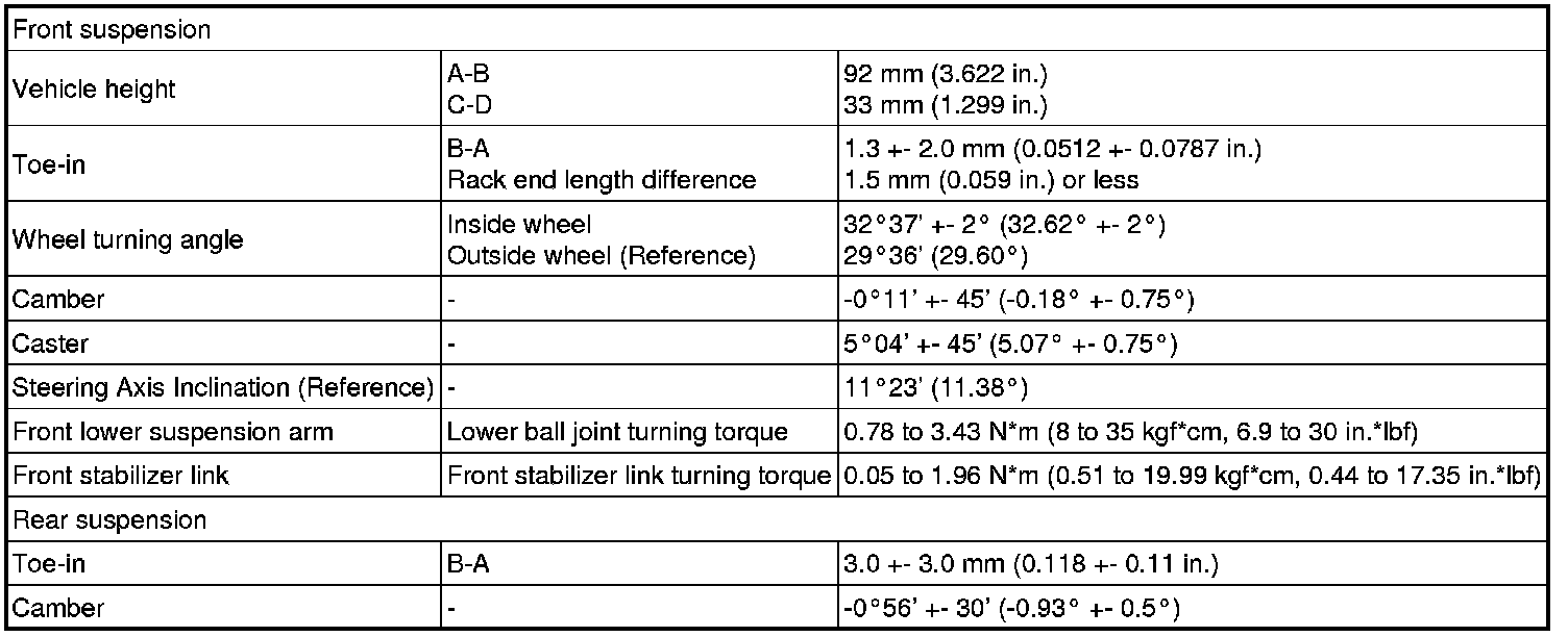 SERVICE SPECIFICATIONS: SUSPENSION: SERVICE DATA