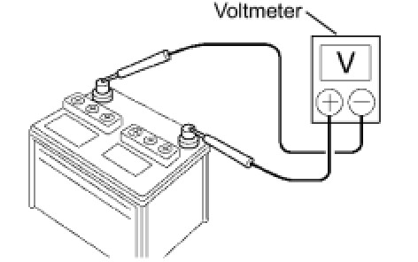 (3) Connect the positive (+) voltmeter lead to positive (+) terminal of the battery.