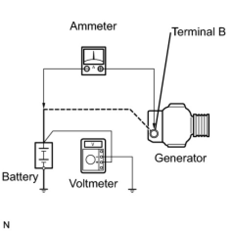 (1) Disconnect the wire from terminal B of the generator and connect it to the negative (-) lead of the ammeter.