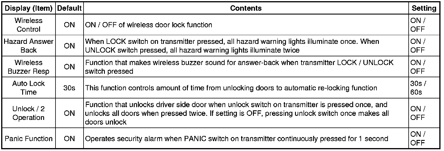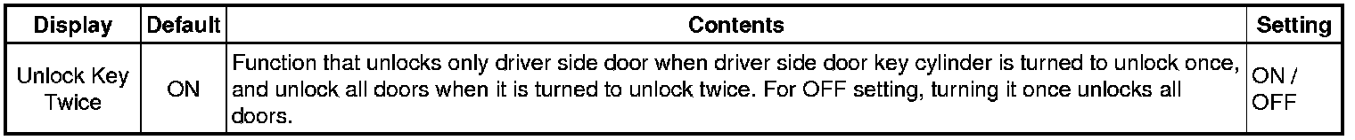 When the buzzer OFF setting is selected, the buzzer activation while the vehicle is being driven is cancelled. However, the buzzer activation when the ignition switch is turned to ON cannot be cancelled.
