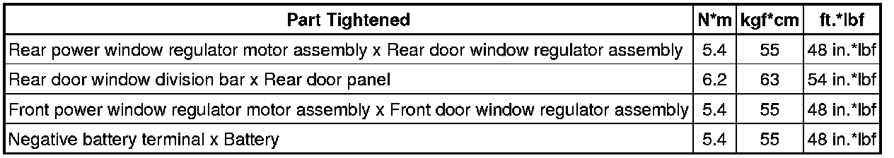 / WINDOWGLASS: TORQUE SPECIFICATIONS