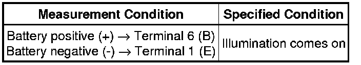 (1) Apply battery voltage to the power window master switch and check that the illumination comes on.