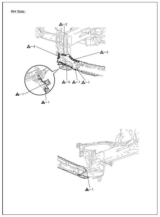 4. After applying the top coat, apply anti-rust agent to the internal panel portion of the closed section structural weld points.