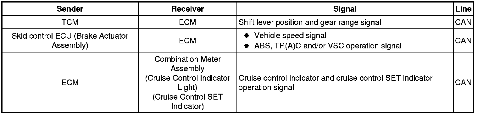* The ECM compares the vehicle speed from the speed sensor with the stored vehicle speed set using the cruise control main switch. The ECM instructs the throttle valve motor of the throttle with motor body assembly to close the valve when the vehicle speed is greater than the stored speed, and instructs it to open the valve when the vehicle speed is less than the stored speed.