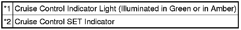 * The ECM turns off the cruise control indicator light or illuminates the cruise control indicator light in amber in the the combination meter assembly when a malfunction occurs during cruise control driving.