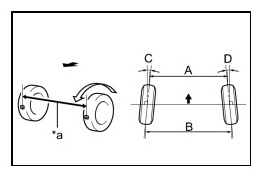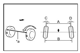 e. Put tread center marks on the rearmost points of the front wheels and measure the distance between the marks (dimension B).