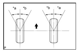 If the measured value is not within the specified range, inspect the suspension parts for damage and wear. Replace parts as necessary because camber cannot be properly adjusted with any damaged or worn parts.