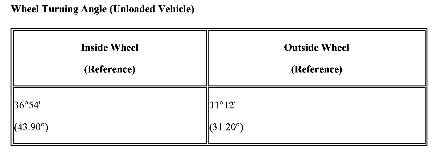 b. Turn the steering wheel fully to the left and right and measure the turning angle.