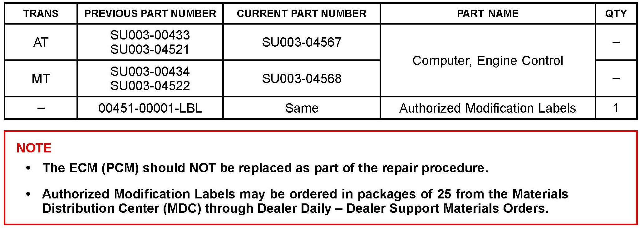 ^ ECM part number [Refer to the Parts Information section for the CURRENT PART NUMBER]
