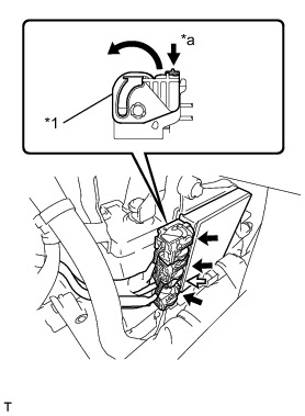 (a) Move the lock levers in the direction indicated by the arrow to release the 3 connector locks. Disconnect the 4 connectors from the injector driver.