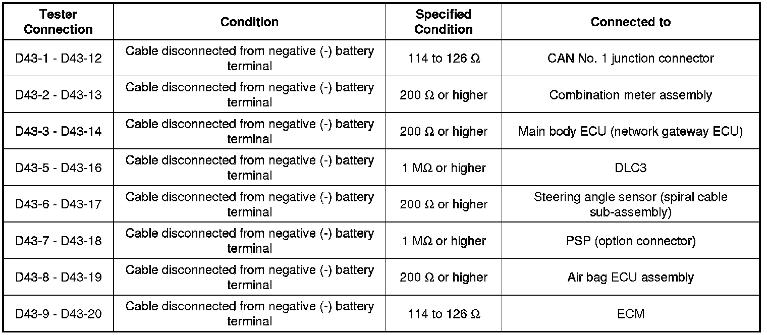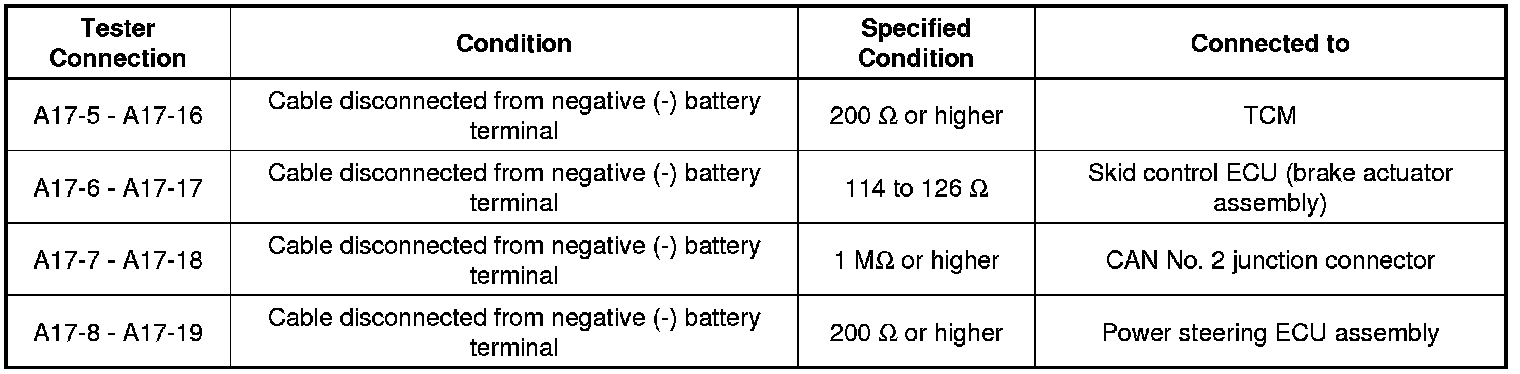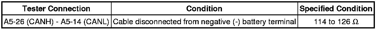 * Before measuring the resistance of the CAN bus, turn the ignition switch off and leave the vehicle for 1 minute or more without operating the key, switches or opening or closing the doors. After that, disconnect the cable from the negative (-) battery terminal and leave the vehicle for 1 minute or more before measuring the resistance.