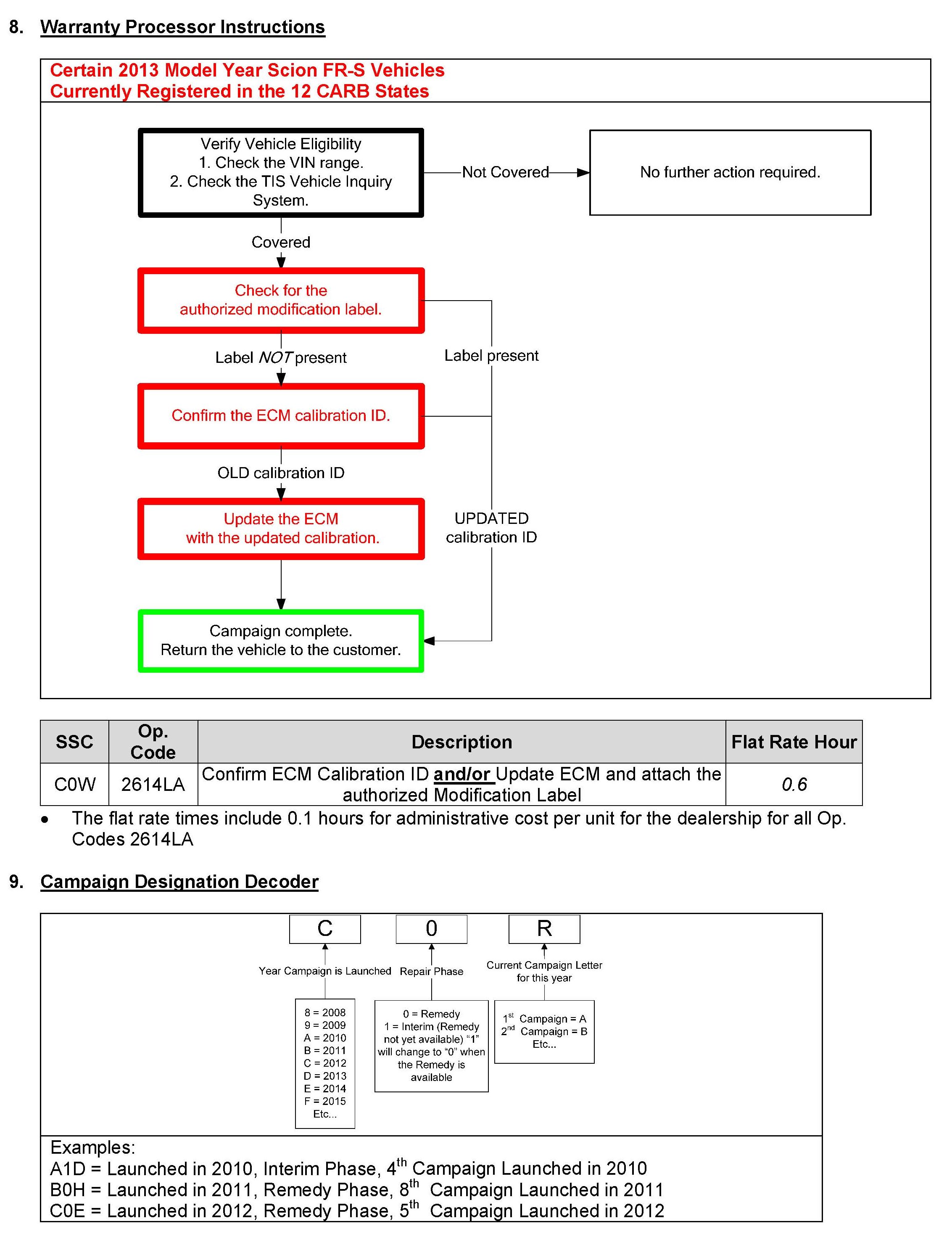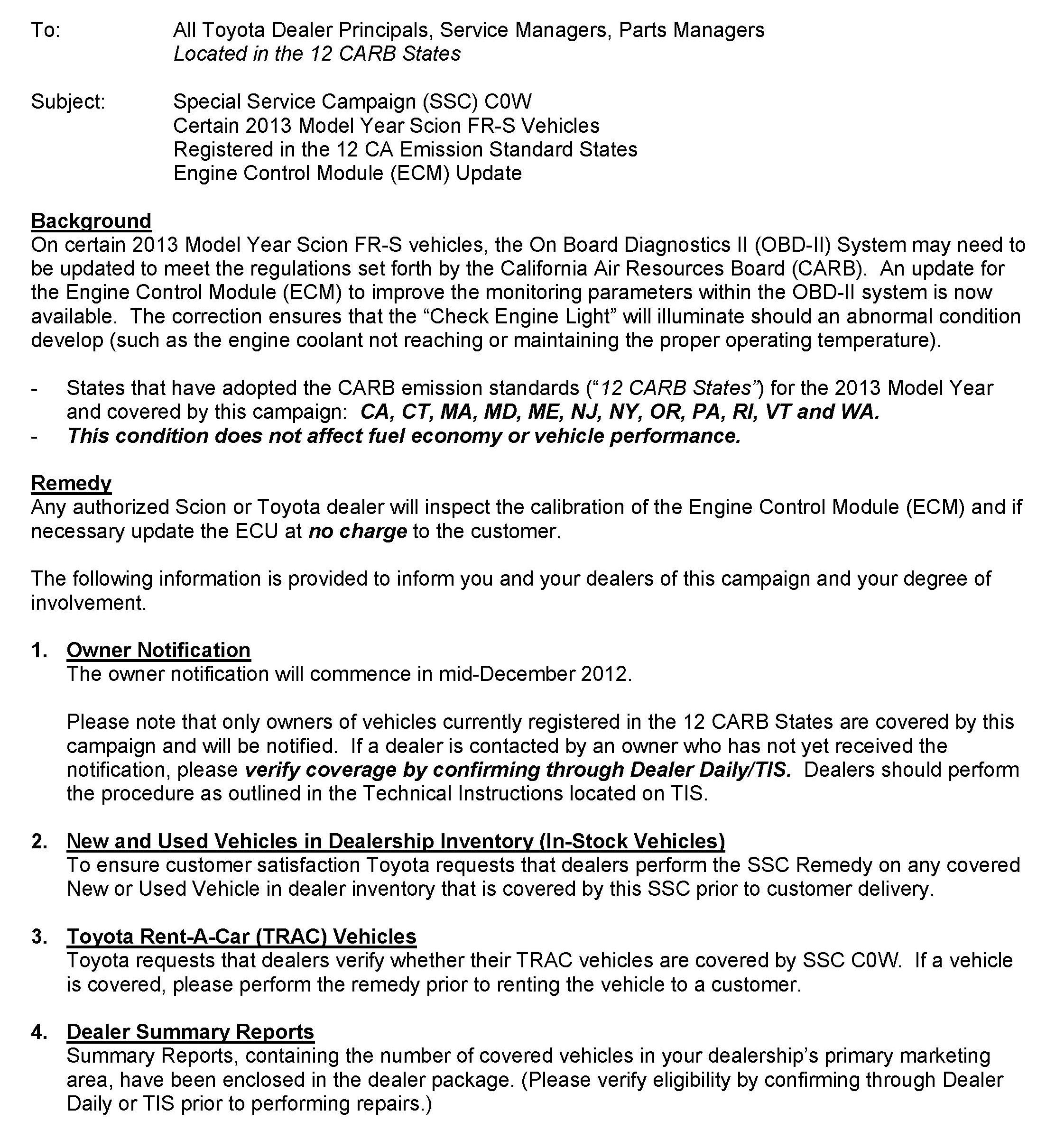 Recall - ECM Update For CARB OBDII Regulation Compliance
