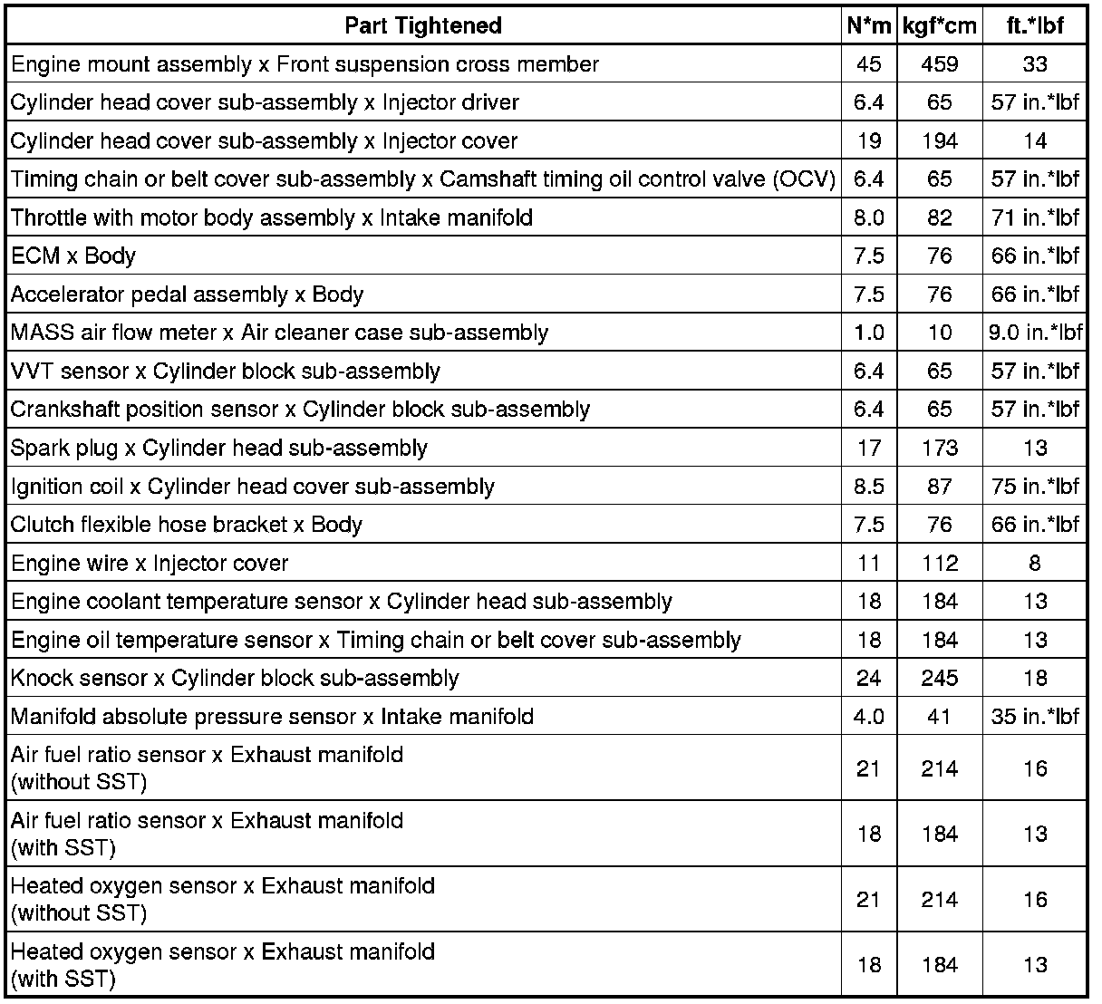 SPECIFICATIONS: FA20 ENGINE CONTROL: TORQUE SPECIFICATIONS; 2013 MY FR-S [03/2012 -]