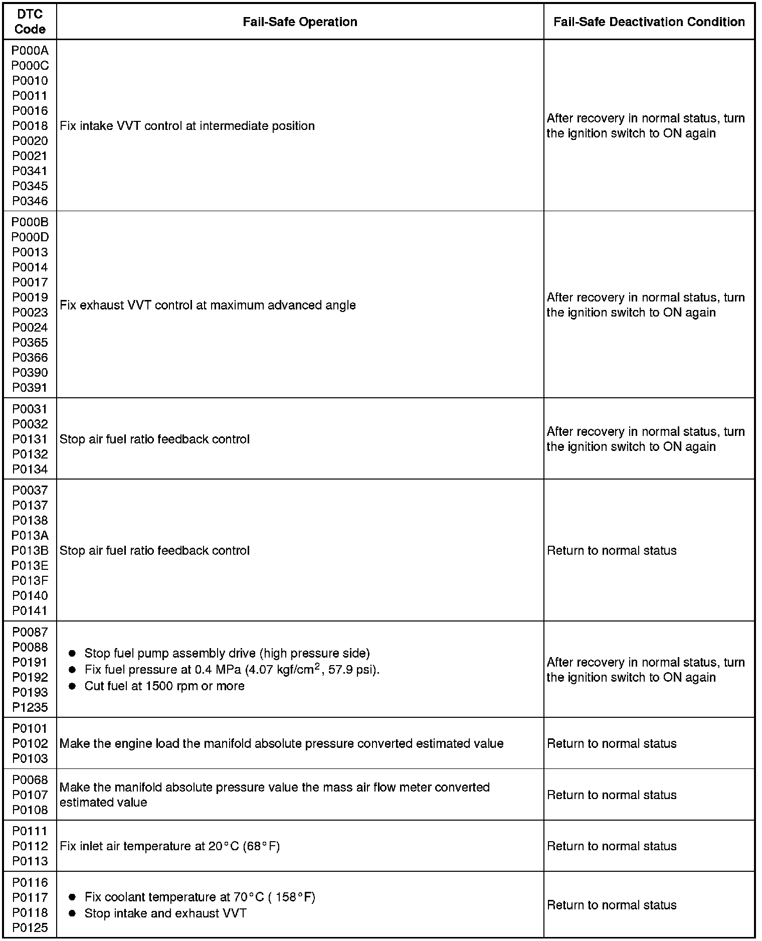 FA20 ENGINE CONTROL: SFI SYSTEM: FAIL-SAFE CHART; 2013 MY FR-S [03/2012 -]