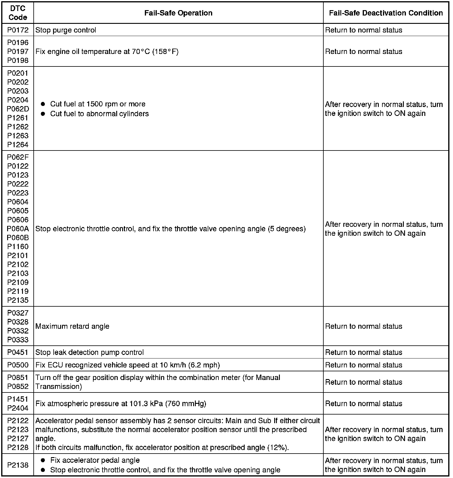 If any of the following DTCs are stored, the ECM enters fail-safe mode to allow the vehicle to be driven temporarily or stops fuel injection.