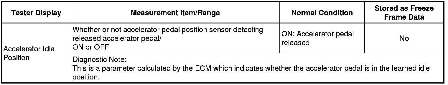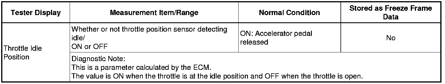Normal Condition: If no conditions are specifically stated for "idling", the shift lever should be in P, N or neutral, the A/C switch should be off and all accessory switches should be off.