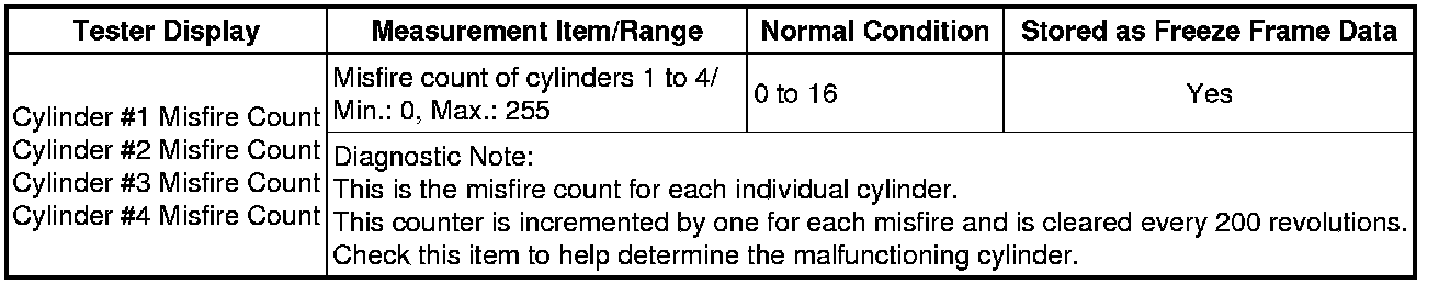 Cylinder #1 Misfire Count to Cylinder #4 Misfire Count