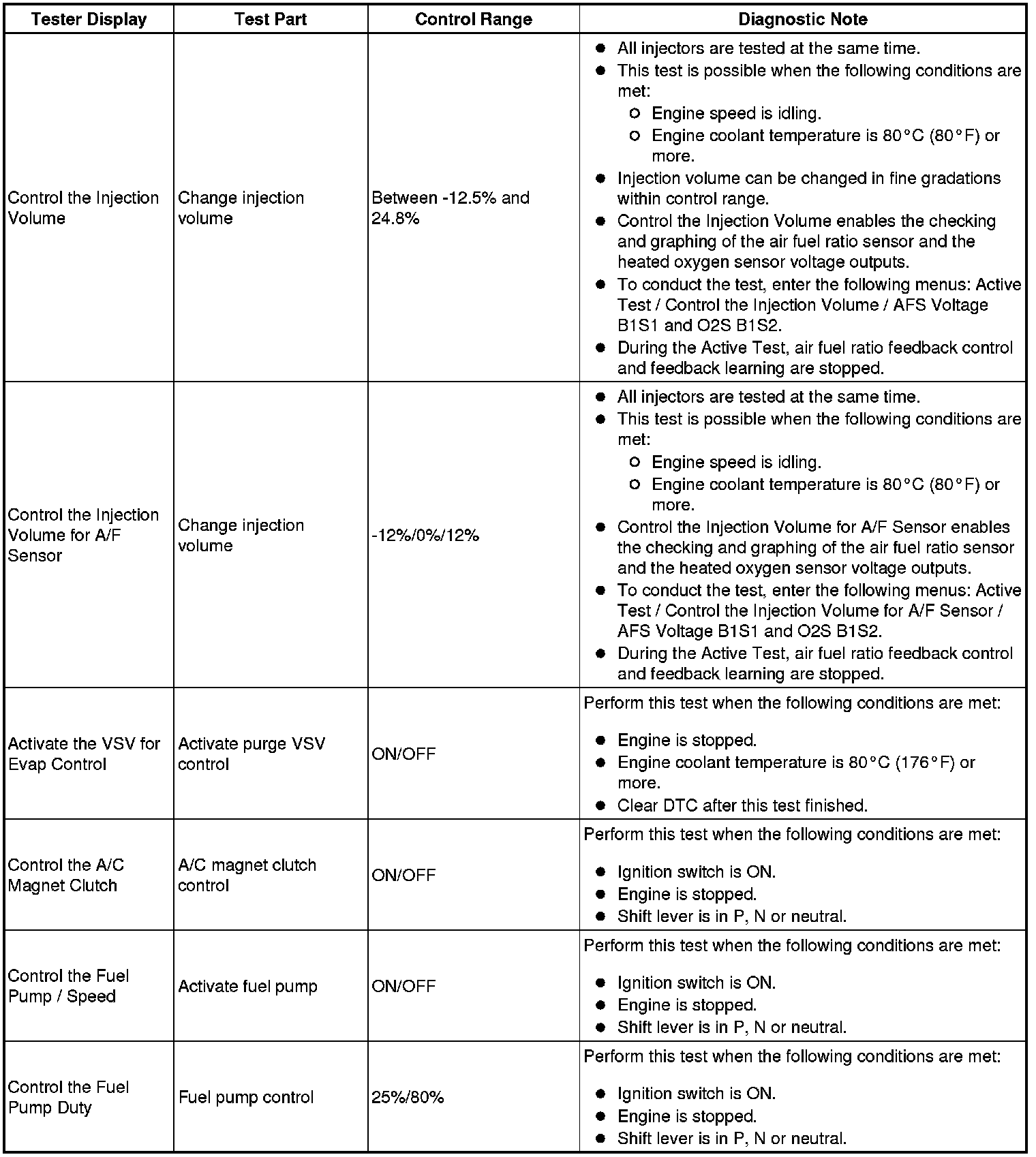 * If the display of the Data List item Catalyst OT MF F/C item is Not Avl, perform this Active Test with the vehicle stopped and the engine idling.