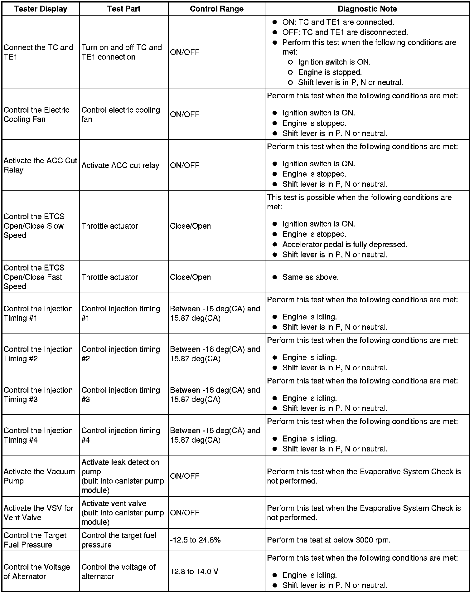 (2) Enter the Control the Select Cylinder Fuel Cut.