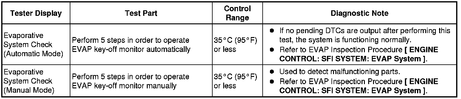 (e) Perform the System Check by referring to the table below.