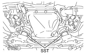 (c) Hoist the engine assembly up with an engine sling device and a mini crane.