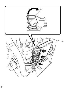(i) Connect the 4 connectors to the injector driver. Move the lock levers in the direction indicated by the arrow to lock the 3 connectors.