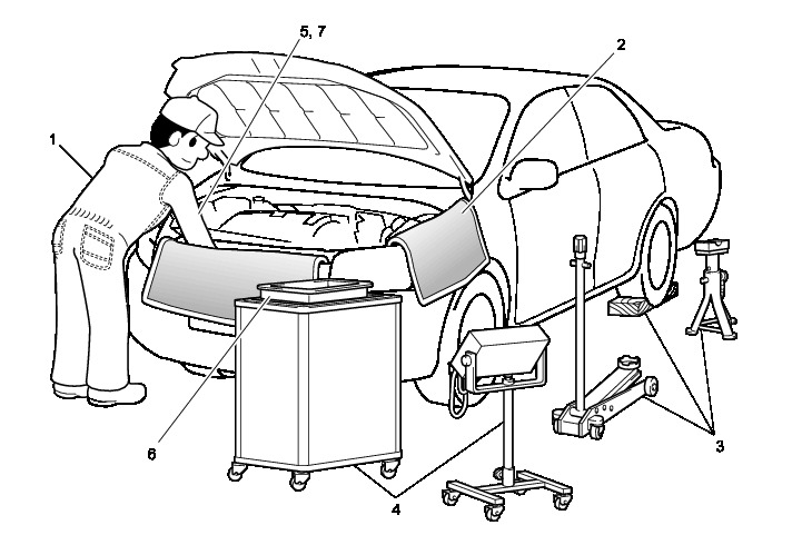 (b) JACKING UP AND SUPPORTING THE VEHICLE