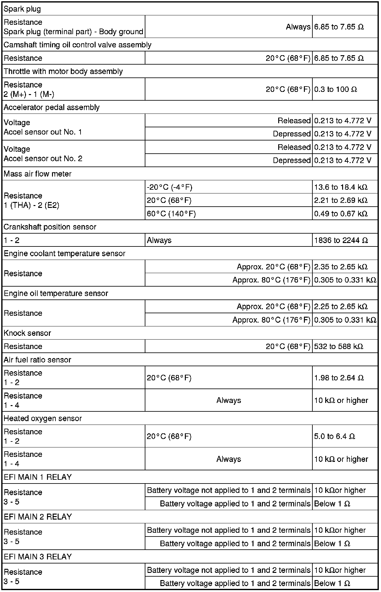 SPECIFICATIONS: FA20 ENGINE CONTROL: SERVICE DATA; 2013 MY FR-S [03/2012 -]