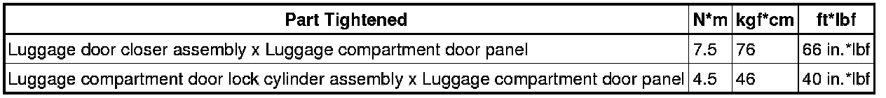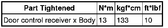 SPECIFICATIONS: DOOR LOCK: TORQUE SPECIFICATIONS; 2013 MY FR-S [03/2012 -]