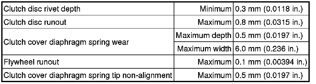 SPECIFICATIONS: CLUTCH: SERVICE DATA; 2013 MY FR-S [03/2012 -]