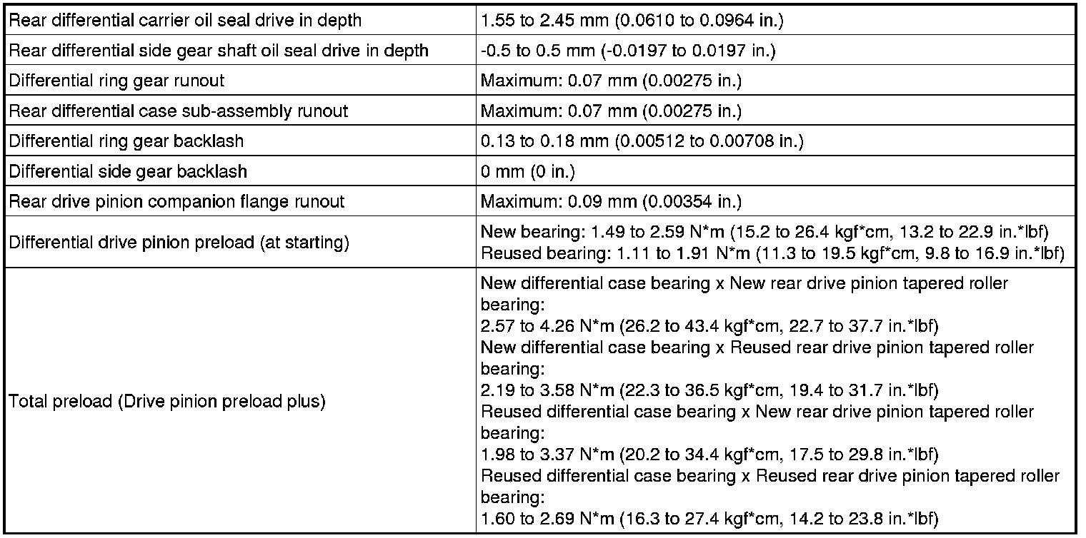 SPECIFICATIONS: AXLE AND DIFFERENTIAL: SERVICE DATA; 2013 MY FR-S [03/2012 -]