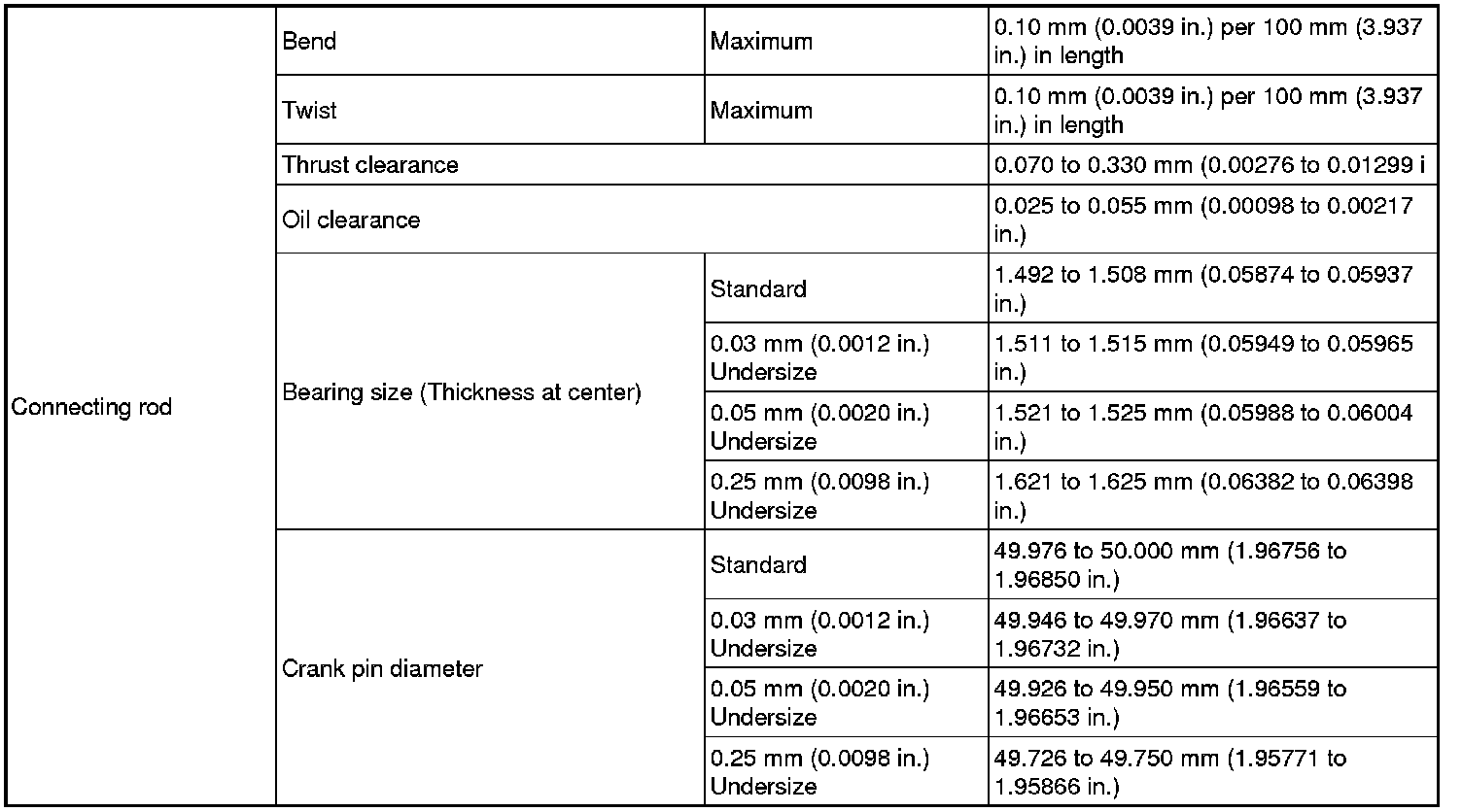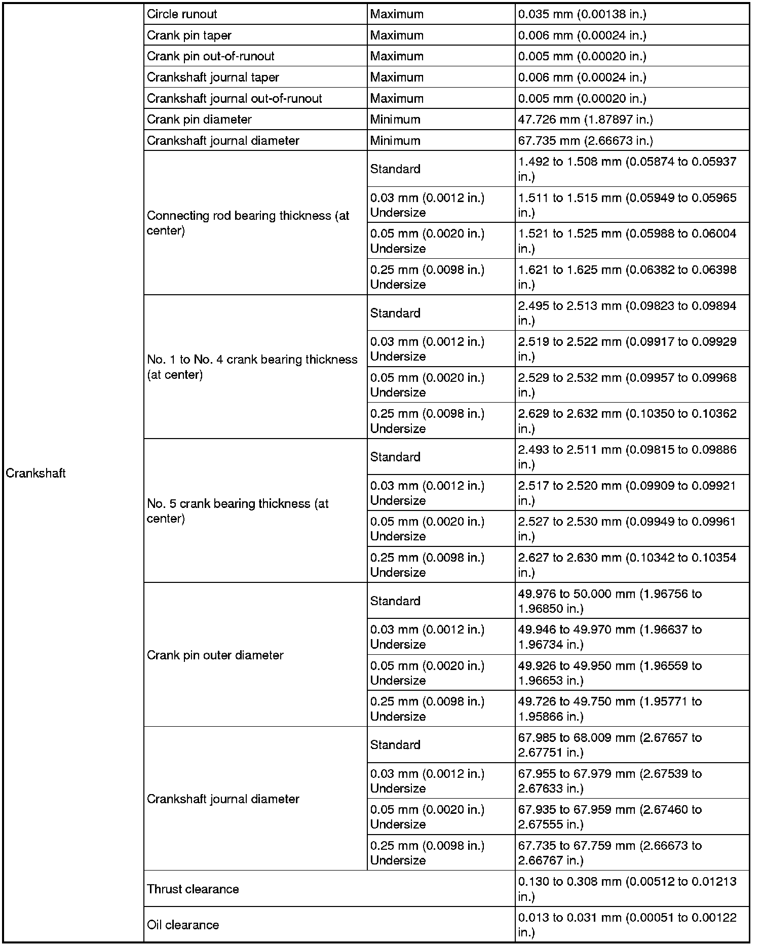 SPECIFICATIONS: FA20 ENGINE MECHANICAL: SERVICE DATA; 2013 MY FR-S [03/2012 -]