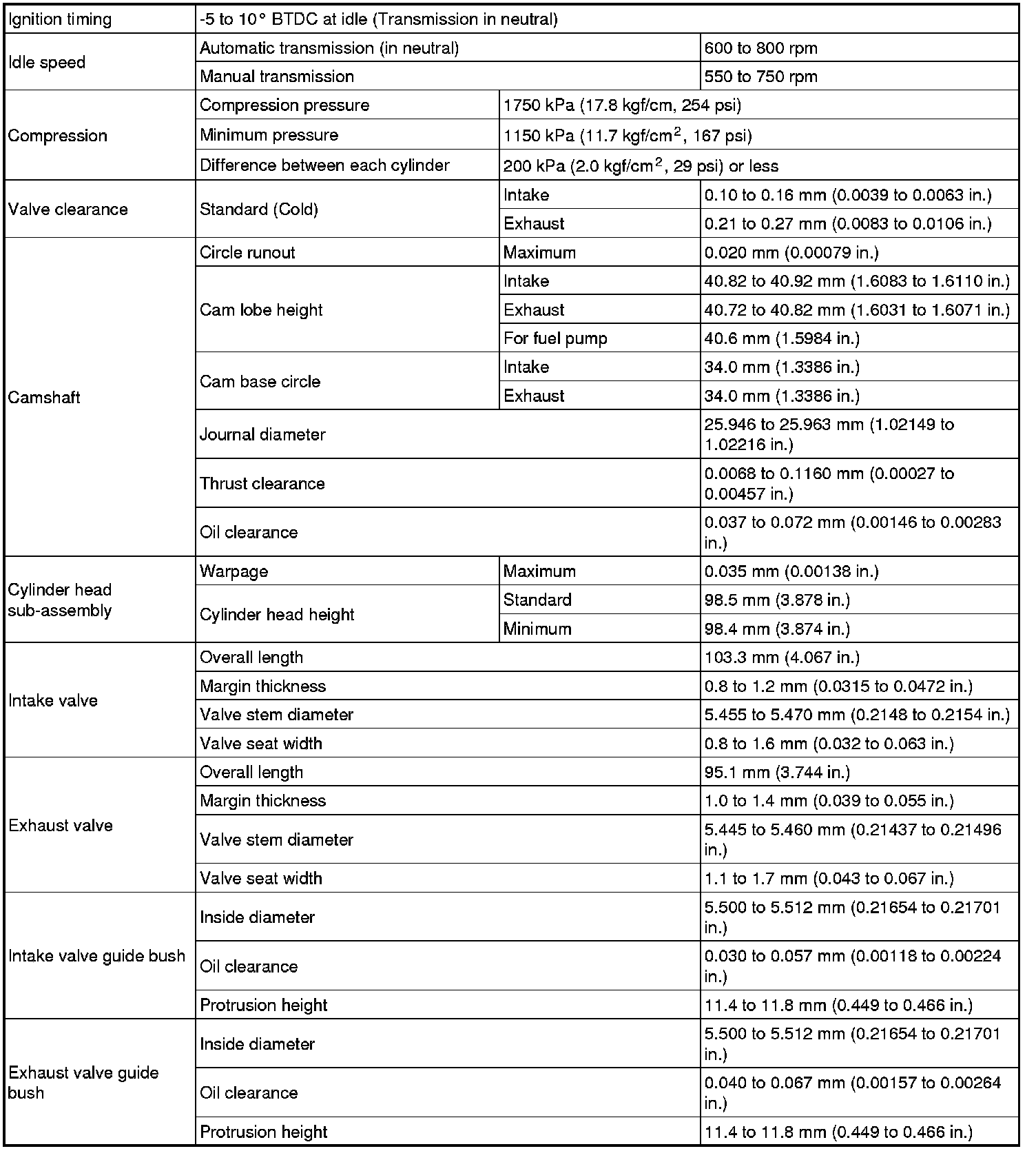 SPECIFICATIONS: FA20 ENGINE MECHANICAL: SERVICE DATA; 2013 MY FR-S [03/2012 -]