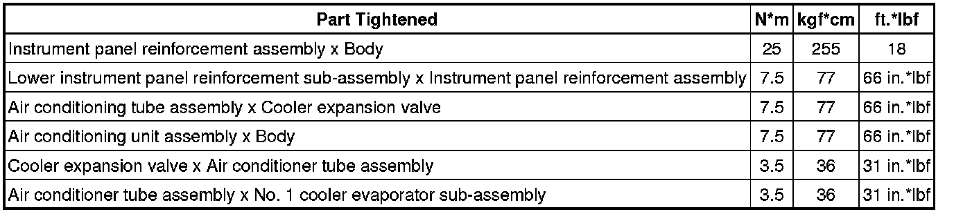 SPECIFICATIONS: HEATING / AIR CONDITIONING: TORQUE SPECIFICATIONS; 2013 MY FR-S [03/2012 -]